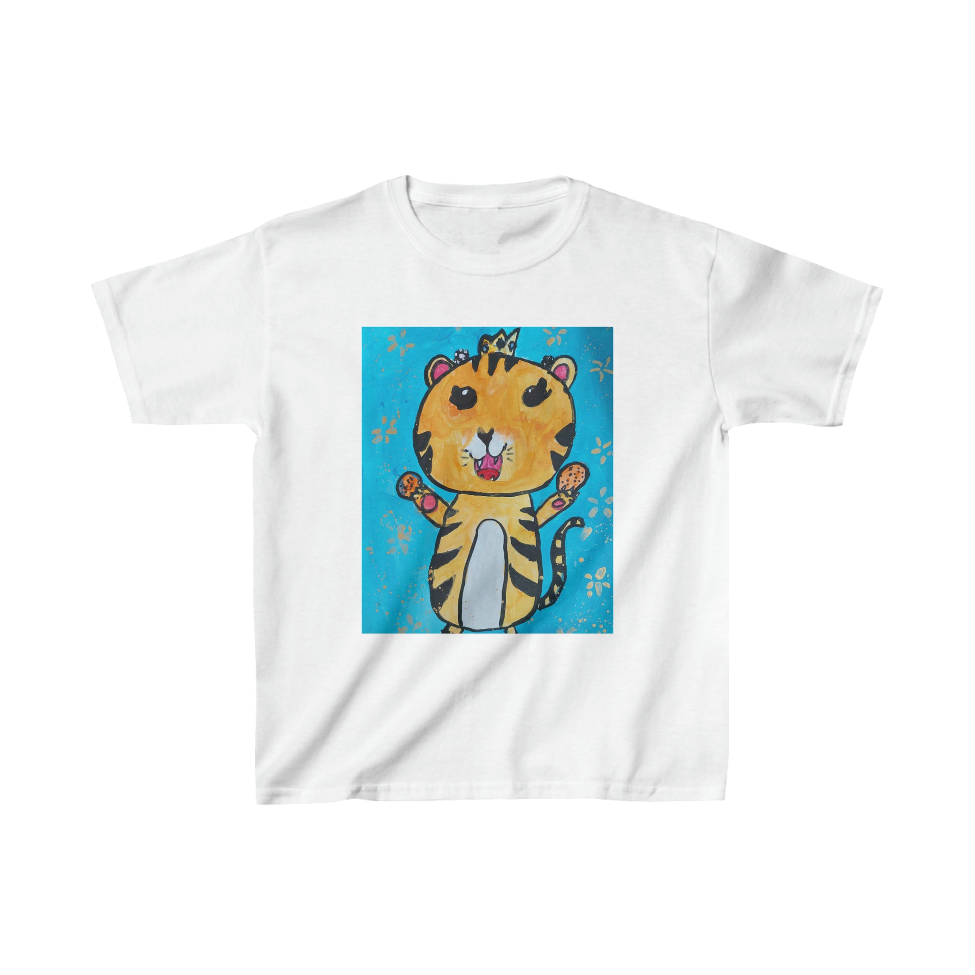 The kids heavy cotton tee is perfect for everyday use. The fabric is 100% cotton for solid colors. Polyester is included for heather-color variants. These fabrics are prime materials for printing. The shoulders have twill tape for improved durability. The collar is curl resistant due to ribbed knitting. There are no seams along the sides.